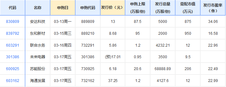 新股方面,根據(jù)發(fā)行安排,A股市場下周將有6只新股申購。