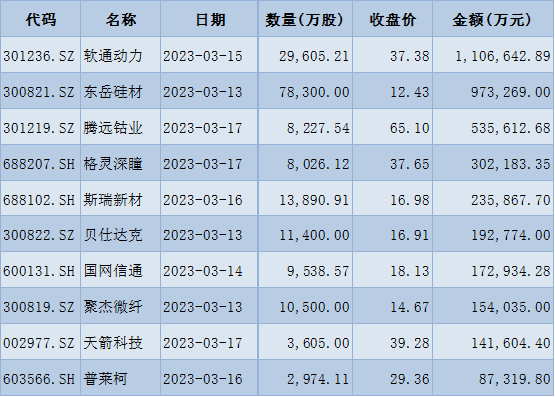 表:下周解禁市值前十位(以本周收盤價計算)
