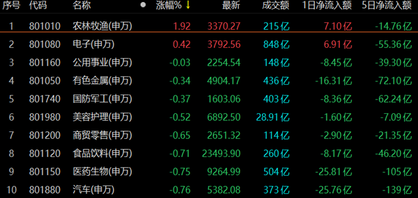 農(nóng)林牧漁行業(yè)漲1.92%