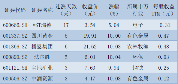 表:連續(xù)上漲3日且今日收盤漲停股一覽