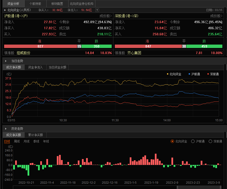 早盤三大指數(shù)高開震蕩 北上資金涌入超36億元 機構(gòu)稱中國特色估值...2023-03-15 12:06