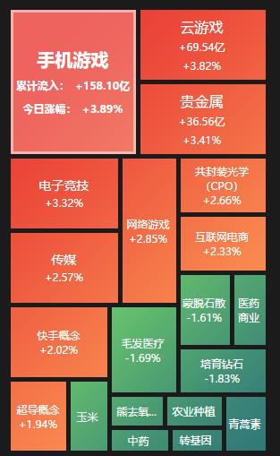 熱點(diǎn)方面,截至3月20日上午收盤,手機(jī)游戲、貴金屬等行業(yè)漲幅居前。另外,中藥、培育鉆石等行業(yè)跌幅居前。