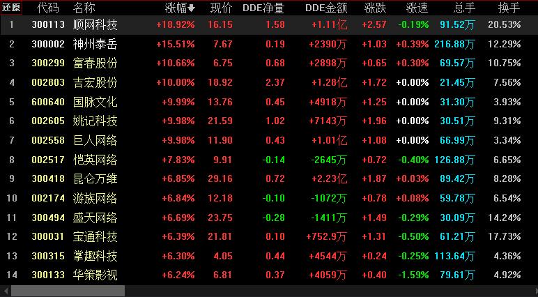 具體看,截至3月20日上午收盤,手機(jī)游戲板塊漲幅居首達(dá)3.89%。其中,順網(wǎng)科技、神州泰岳、富春股份等概念股漲幅均超10%。