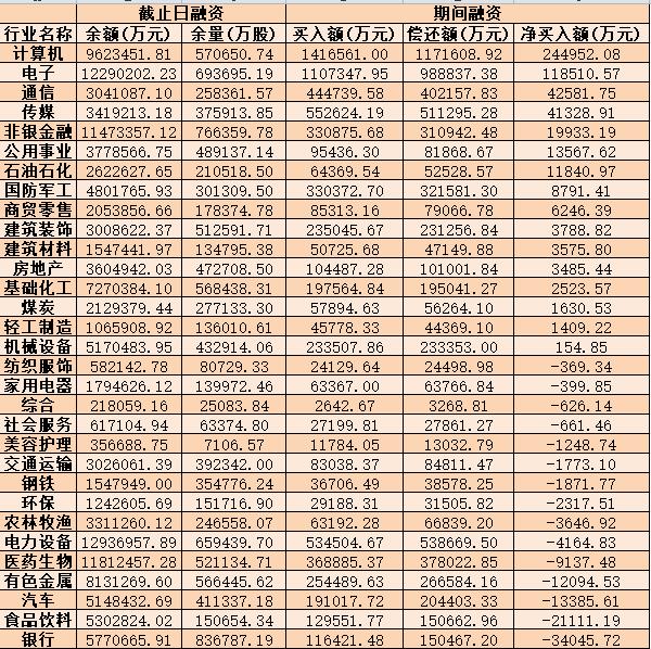 表:3月22日申萬(wàn)一級(jí)行業(yè)兩融交易情況: