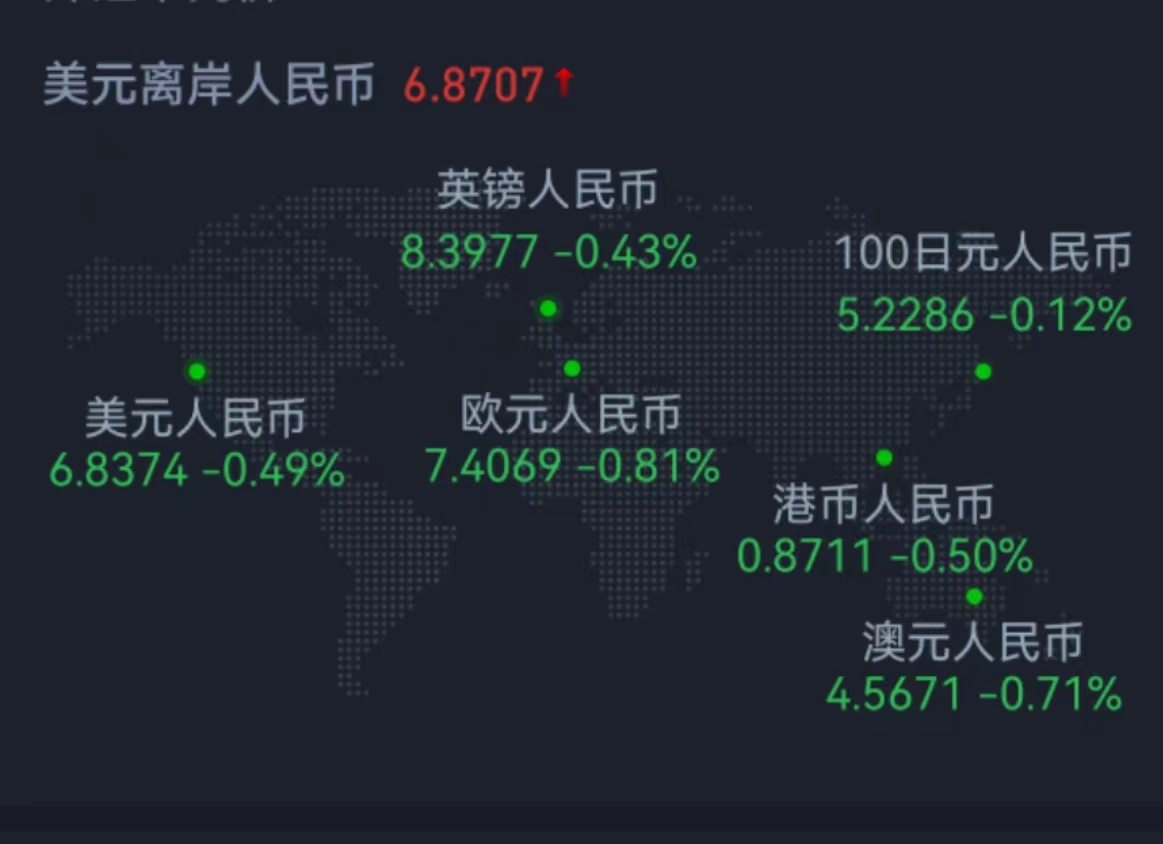 周五在岸人民幣兌美元16:30收盤報6.8655,較上一交易日跌366個基點,本周累漲110個基點。人民幣兌美元中間價調(diào)升335個基點,報6.8374,本周累計調(diào)升678個基點。在岸人民幣兌美元夜盤收報6.8679。
