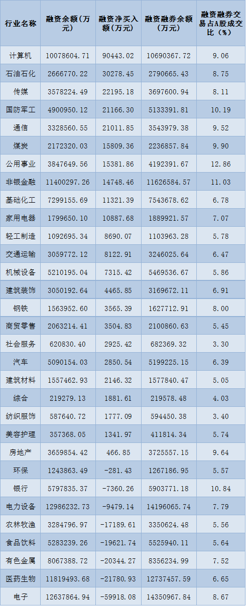 表:3月28日申萬(wàn)一級(jí)行業(yè)兩融交易情況: