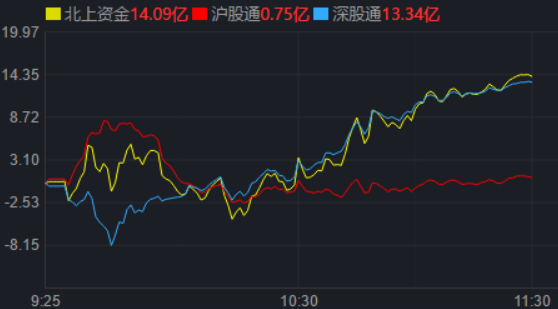 從資金面來看,3月30日上午,北上資金凈買入14.09億元,其中,滬股通凈買入0.75億元,深股通凈買入13.34億元。