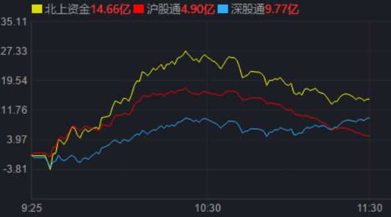 從資金面來看,3月31日上午,北上資金凈買入金額達(dá)14.66億元,其中,滬股通凈買入4.90億元,深股通凈買入9.77億元。