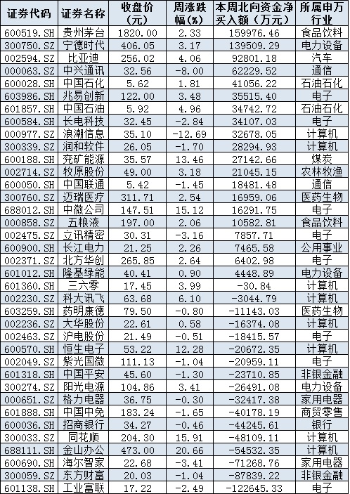 表:本周滬、深股通前十大成交活躍股交易情況: