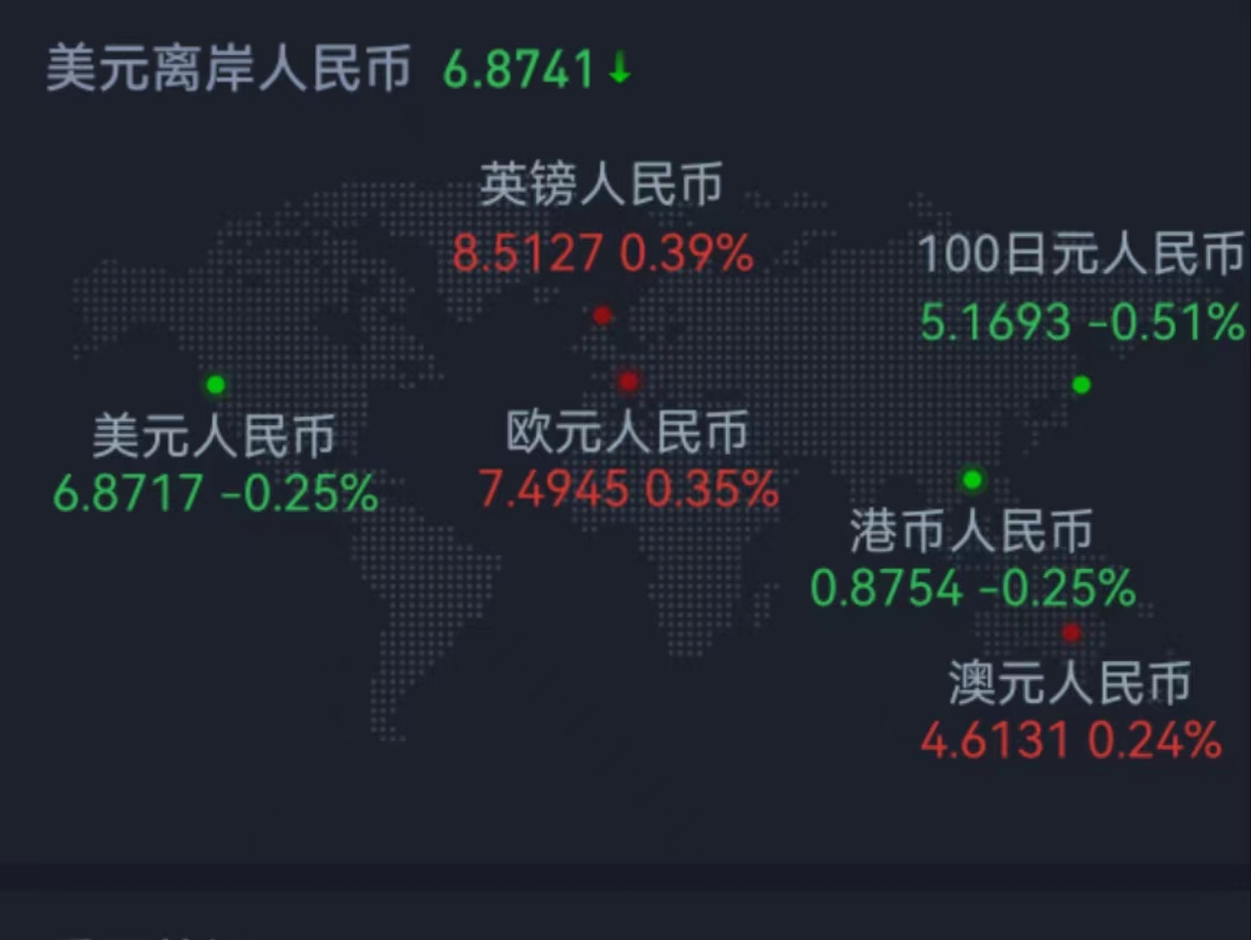 本周五在岸人民幣兌美元16:30收盤報6.8713,較上一交易日漲68個基點,周跌58個基點。人民幣兌美元中間價報6.8717,調(diào)升169個基點,本周累計調(diào)貶343個基點。在岸人民幣兌美元夜盤收報6.8745。