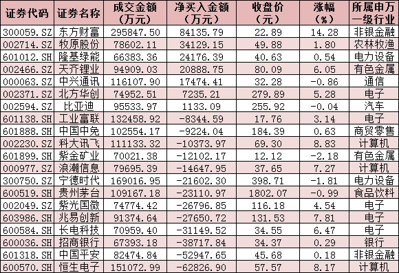表:今日滬股通、深股通前十大成交活躍股交易情況: