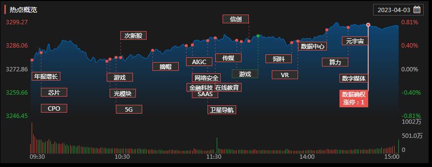 對于今天市場的放量上漲,排排網(wǎng)財富研究部副總監(jiān)劉有華告訴《證券日報》記者,主要有三方面的原因:其一,國家統(tǒng)計局公布3月份制造業(yè)PMI為51.9%,已是連續(xù)3個月保持榮枯線以上,基本面進一步向好。其二,市場進入2022年年報與2023年一季報的密集披露期,市場的關注點逐步回到基本面上。其三,創(chuàng)業(yè)板和科創(chuàng)板的交易量明顯放量,既代表著資金的切換,也蘊含著市場情緒的好轉,有望維持強勢。接下來,市場仍將維持震蕩表現(xiàn),由計算機板塊"一家獨大"的結構性行情可能會有所放緩,部分高低切換的資金有望給超跌的賽道、消費板塊帶來反彈的機會。