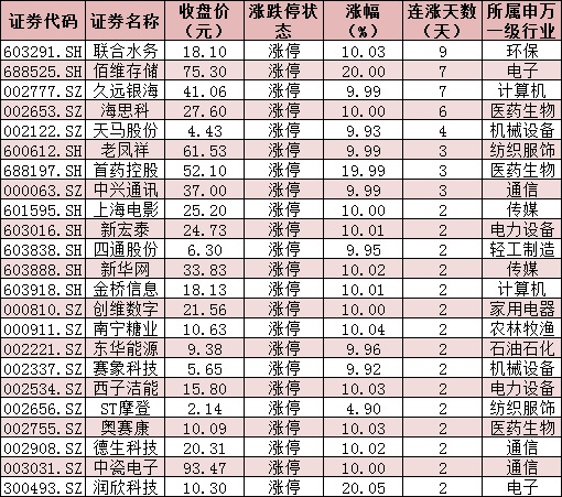 表:連續(xù)上漲3日且今日收盤漲停個股情況: