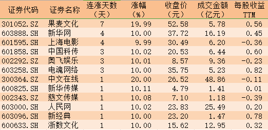 表:4月11日傳媒行業(yè)漲停個(gè)股一覽