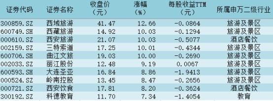 表:社會(huì)服務(wù)行業(yè)個(gè)股今日漲幅前十位一覽