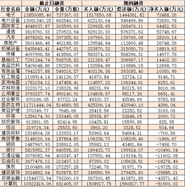 表:4月19日申萬一級行業(yè)兩融交易情況: