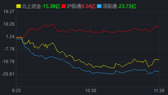 從資金面來看,4月24日上午,北上資金凈流出15.38億元,其中,滬股通凈買入8.34億元,深股通凈流出23.73億元。