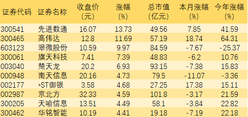 表:4月24日數(shù)字貨幣板塊漲幅前十個股一覽: