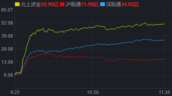 從資金面來(lái)看,4月28日上午,北上資金凈買入金額達(dá)50.90億元,其中,滬股通凈買入15.98億元,深股通凈買入34.92億元。