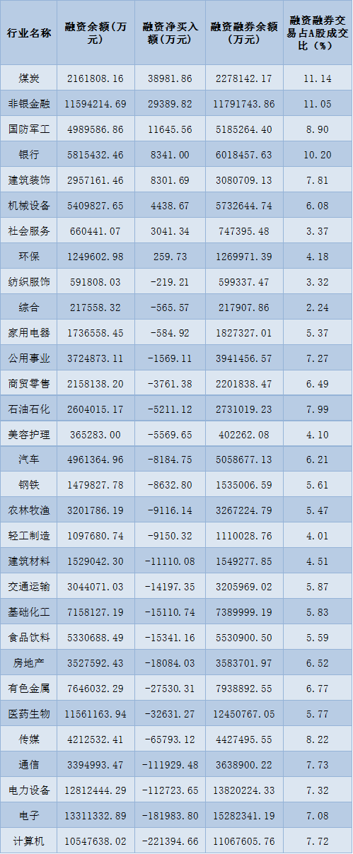 表:4月27日申萬(wàn)一級(jí)行業(yè)兩融交易情況: