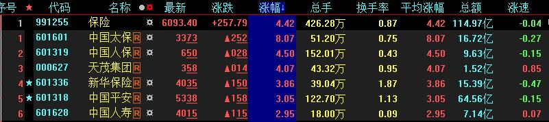 具體看,截至5月4日上午收盤,保險板塊漲幅居首達4.42%。其中,中國太保、中國人保、天茂集團等個股漲幅均超4%。