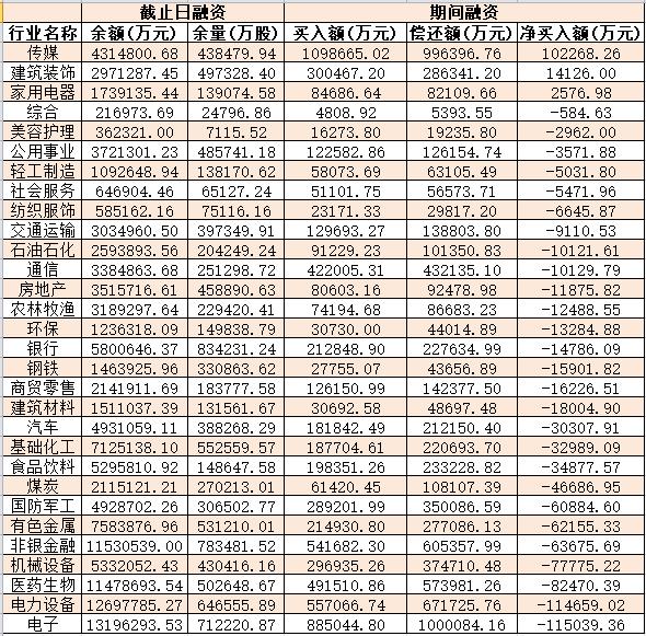 表:4月28日申萬一級行業(yè)兩融交易情況: