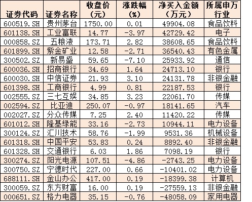 表:今日滬、深股通前十大成交活躍股交易情況: