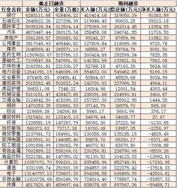表:5月10日申萬(wàn)一級(jí)行業(yè)兩融交易情況: