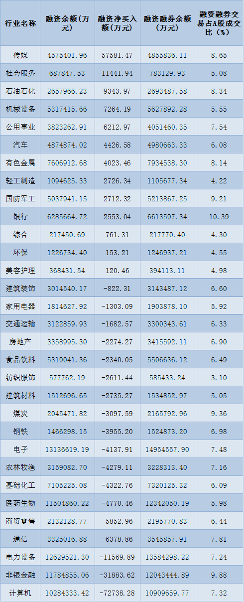 表:5月11日申萬(wàn)一級(jí)行業(yè)兩融交易情況: