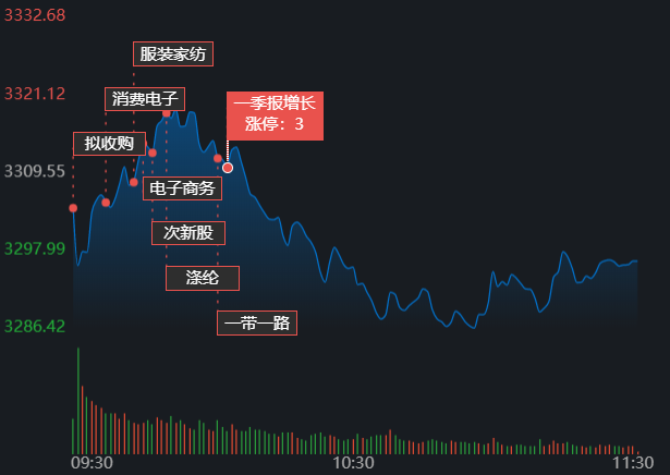 5月12日早盤,A股三大指數(shù)震蕩回落,滬指早盤跌破3300點(diǎn)關(guān)口。截至上午11:30,上證指數(shù)跌0.40%,報(bào)3296.38點(diǎn);深證成指和創(chuàng)業(yè)板指漲幅分別為-0.47%和-0.11%;滬深兩市成交額合計(jì)5462.2億元??傮w來(lái)看,A股市場(chǎng)跌多漲少,漲跌停方面,有25只個(gè)股漲停,跌停股24只。