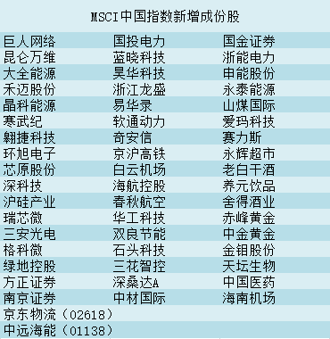 表:MSCI中國(guó)指數(shù)新增成份股一覽: