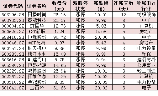 表:連續(xù)上漲3日且今日收盤漲停個(gè)股情況:
