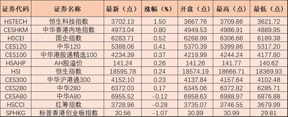 表:5月30日港股市場重要指數(shù)表現(xiàn)一覽
