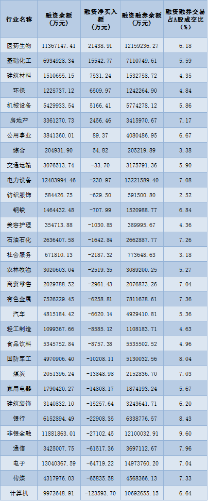 表:6月6日申萬一級行業(yè)兩融交易情況: