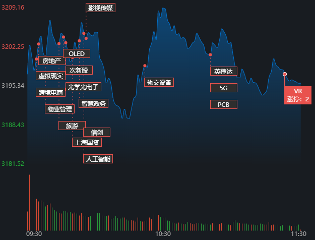 6月7日早盤,A股三大指數(shù)震蕩分化,滬市表現(xiàn)相對強勢。截至上午11:30,上證指數(shù)漲0.02%,報3195.88點,深證成指和創(chuàng)業(yè)板指跌幅分別為0.37%和1.32%;滬深兩市成交額合計5022.5億元??傮w來看,A股市場個股漲多跌少,有2605只上漲,2315只下跌,漲跌停方面,有57只個股漲停,跌停股7只。