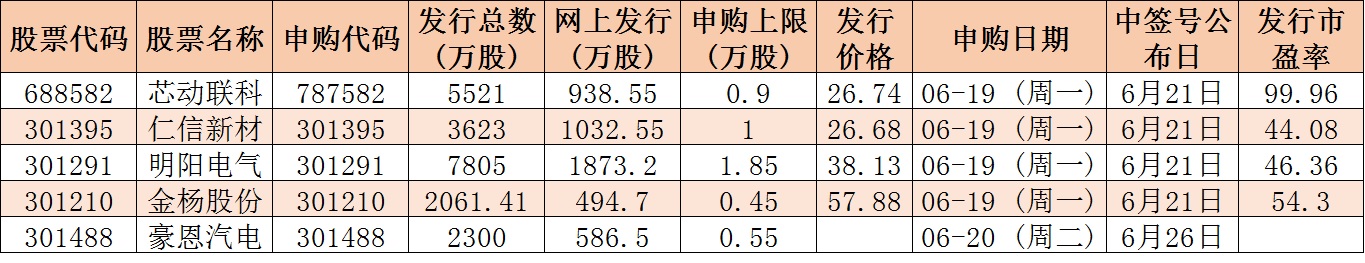 根據(jù)發(fā)行安排,下周有5只新股發(fā)行,周一發(fā)行4只,周二發(fā)行1只。