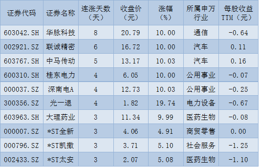 表:連續(xù)上漲3日且今日收盤漲停股一覽