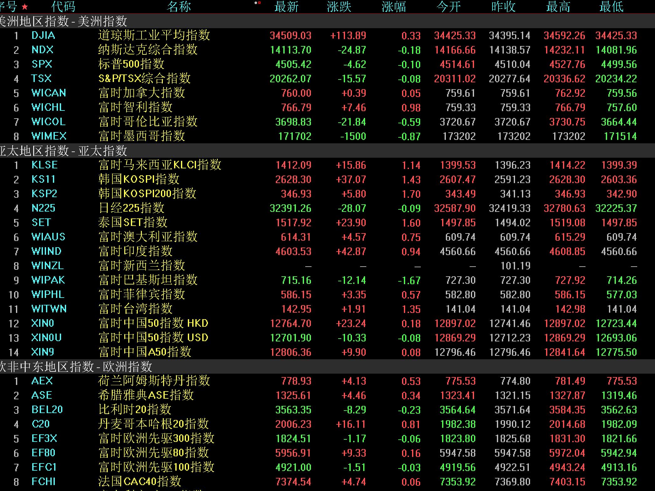 周五,美國三大股指收盤漲跌不一,道指漲0.33%報34509.03點,標普500指數(shù)跌0.1%報4505.42點,納指跌0.18%報14113.7點。本周,道指漲2.29%,標普500指數(shù)漲2.42%,納指漲3.32%。