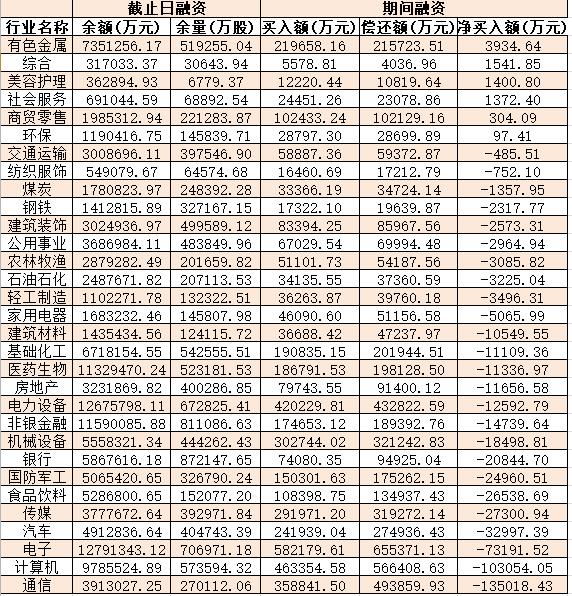 表:7月20日申萬一級(jí)行業(yè)兩融交易情況