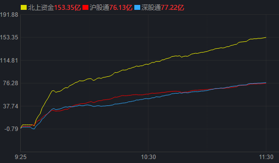 從資金面來看,7月25日上午,北上資金凈買入金額達(dá)153.35億元,其中,滬股通凈買入76.13億元,深股通凈買入77.22億元。