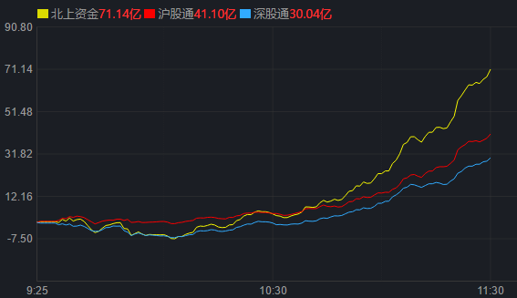 從資金面來(lái)看,7月28日上午,北上資金凈買入金額達(dá)71.14億元,其中,滬股通凈買入41.10億元,深股通凈買入30.04億元。
