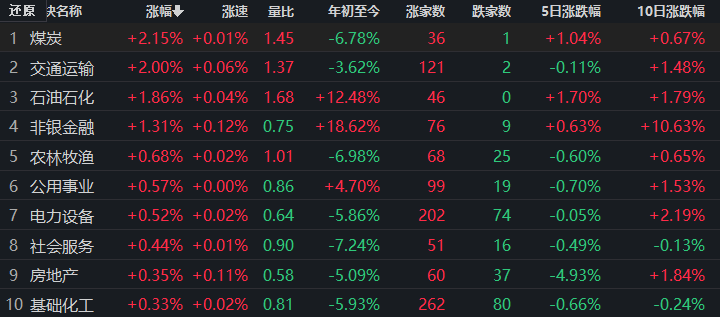 煤炭行業(yè)漲超2%