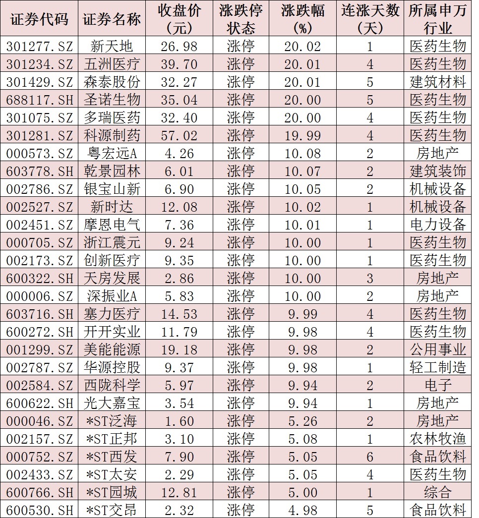 表:今日收盤漲停個(gè)股情況: