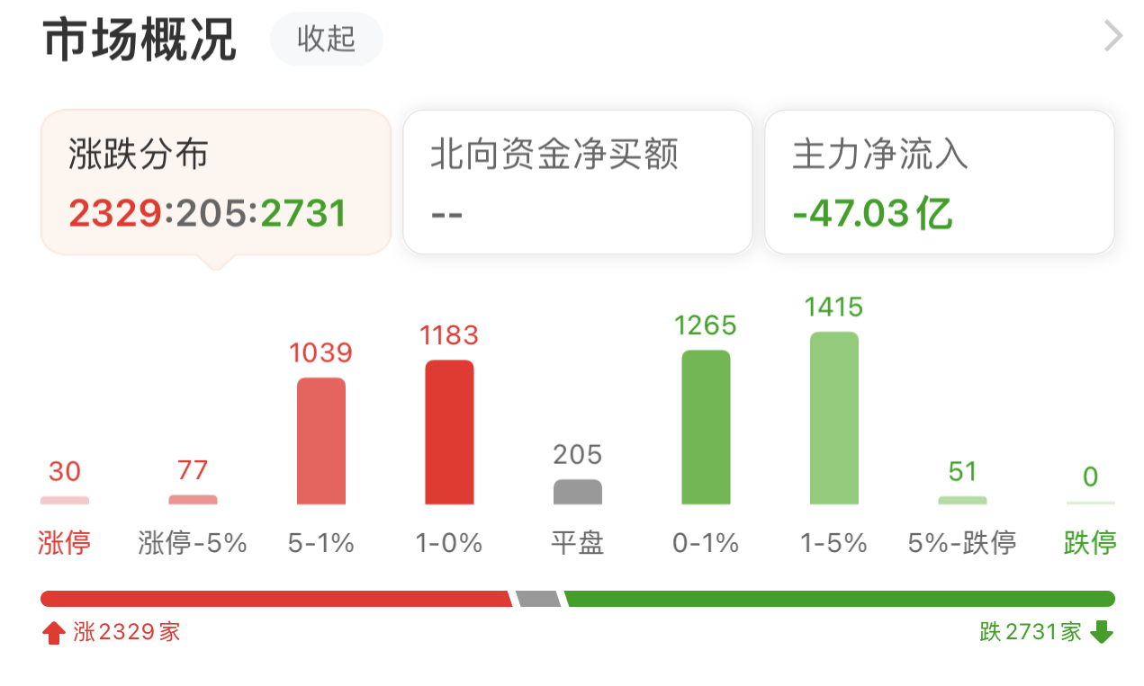 周五(9月1日),A股三大指數(shù)漲跌不一,截至上午收盤(pán),上證指數(shù)漲0.23%,報(bào)3127.19點(diǎn);深證成指漲0.25%,創(chuàng)業(yè)板指跌0.23%;滬深兩市合計(jì)成交額4809.99億元,總體來(lái)看,兩市個(gè)股跌多漲少,其中,超2700只個(gè)股出現(xiàn)下跌,漲停個(gè)股達(dá)30只。