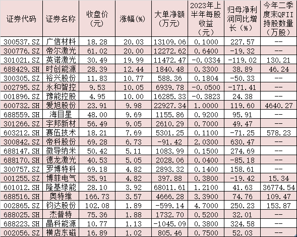 值得關(guān)注的是,以QFII(合格境外機(jī)構(gòu)投資者)為代表的外資也提前布局部分BC電池概念股。數(shù)據(jù)顯示,截至今年二季度末,有8家BC電池概念板塊上市公司的前十大流通股股東中出現(xiàn)QFII身影,以今年6月末收盤價(jià)計(jì)算,持股市值為125.85億元。具體來(lái)看,鈞達(dá)股份、英諾激光、奧特維、時(shí)創(chuàng)能源、博菲電氣等5家公司今年二季度獲QFII新進(jìn)持有;愛旭股份獲QFII繼續(xù)加倉(cāng),增持?jǐn)?shù)量達(dá)1385.65萬(wàn)股;今年二季度QFII對(duì)隆基綠能、賽伍技術(shù)的持倉(cāng)未變,持股數(shù)量分別為36774.54萬(wàn)股、578.23萬(wàn)股。