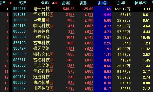 具體看,截至9月7日上午收盤,電子競(jìng)技板塊漲幅居首,達(dá)1.65%,其中,華立科技20CM漲停。
