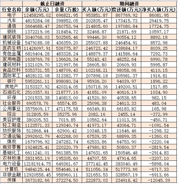 表:9月6日申萬(wàn)一級(jí)行業(yè)兩融交易情況