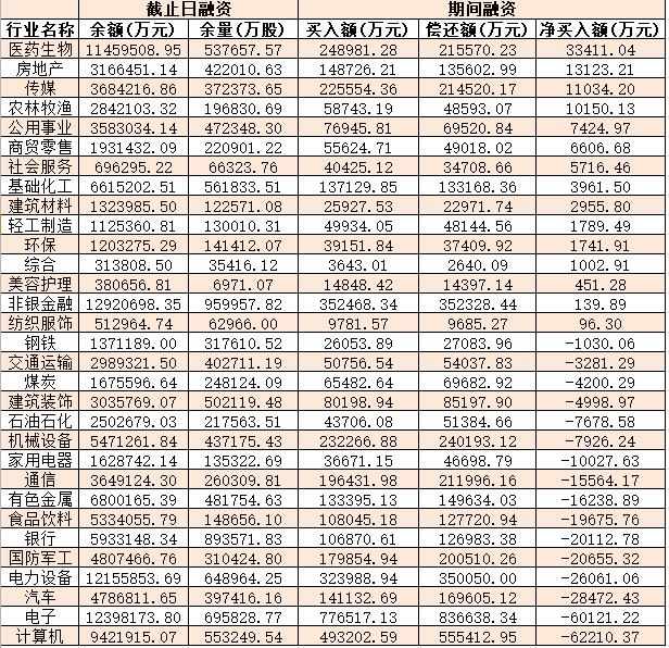 表:9月7日申萬一級(jí)行業(yè)兩融交易情況: