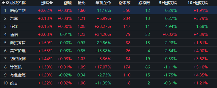 醫(yī)藥生物漲2.62%