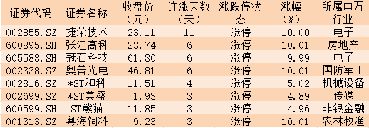 表:今日以漲停價(jià)報(bào)收且連續(xù)上漲3日以上的個(gè)股一覽